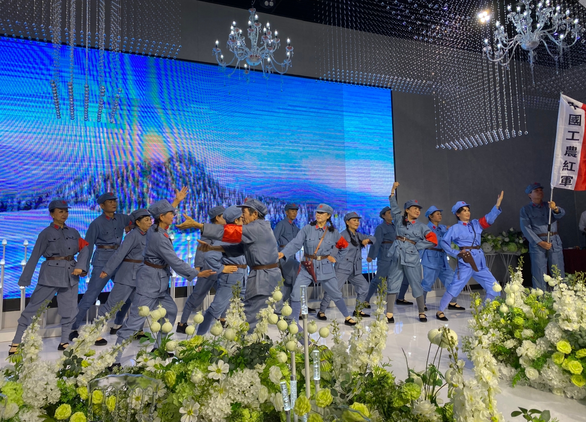 整场庆典演出节目丰富,形式多样,充分展现了艺术团及其合作团体深厚的艺术底蕴和蓬勃活力。由星贝艺术中心的小学员们带来的快板《升旗》和《中华少年》,童声清脆,节奏明快,展现了少年一代的朝气与爱国情怀;卓雅艺术团的模特表演《情醉江南》和《杏花落》,步履轻盈,仪态万方,尽显东方古典韵味与现代时尚的完美融合;红豆红舞蹈队的《相遇》、东方之韵艺术团的《沁园春·雪》《呼伦沐歌》以及《红军不怕远征难》,或柔美婉约,或豪情万丈,或充满民族风情,用动人的舞姿讲述了一个个精彩的故事。