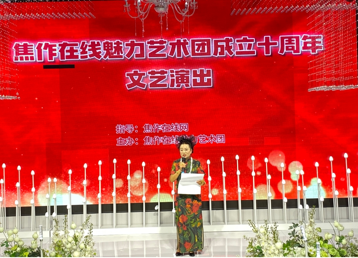 焦作在线魅力艺术团团长赵香梅在活动中激动万分。她回顾了艺术团从无到有、从小到大的十年风雨历程,向十年來支持艺术团发展的焦作在线网、各级领导、社会各界朋友以及每一位为艺术团倾注心血的团员表示了最衷心的感谢。她表示,十年的成绩是肯定,更是新的起点。未来,艺术团将继续秉持“服务群众、传播文化、弘扬正能量”的宗旨,不断提升艺术创作和表演水平,努力推出更多反映时代精神、深受群众喜爱的优秀文艺作品,积极投身于更广泛的文化惠民活动中,为繁荣焦作群众文化事业、丰富人民群众精神世界作出新的、更大的贡献。
