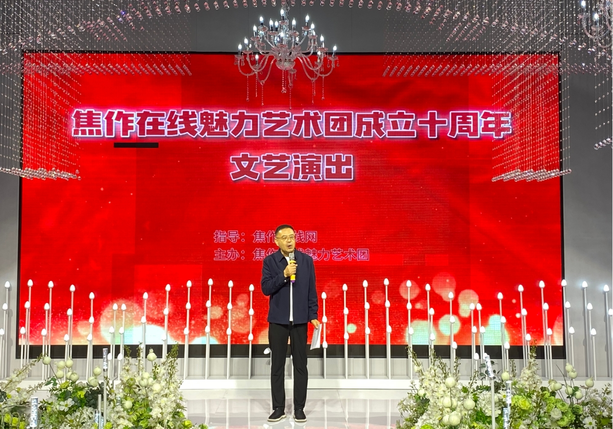 “十年耕耘,硕果累累。”市政协委员、焦作在线网副总编辑秦廷军在致辞中,深情回顾了艺术团不平凡的十年。他代表焦作在线网,向艺术团全体成员表达了最热烈的祝贺和最诚挚的敬意。他指出,艺术团自成立以来,始终坚定不移地扎根群众、服务基层,其足迹不仅遍布焦作的社区乡村,更远赴北京、郑州等地的广阔舞台,在焦作影视城等标志性场所,为春节、端午、中秋、国庆等重要节日奉献了无数精彩演出,极大地丰富了市民的精神文化生活,传播了积极向上的正能量。