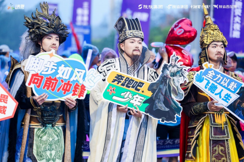 “赛后游览诸葛古镇时,灯笼光影与荧光交织,现场还有多位三国人物与我们互动,仿佛穿越到三国时期。还去尝了核桃馍、热面皮,这趟‘跟着赛事去旅行’太值了!”来自西安的跑者张先生的感受道出了众多参与者的心声。
