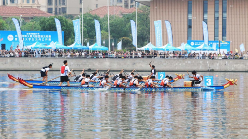 本次赛事以“禹会诸侯地”为文化锚点,巧妙融合竞技体育的现代规则与国际赛事标准,设置10人桨直道竞速项目,通过500米劈波斩浪的激烈角逐,既展现“力与美”的体育精神,更彰显蚌埠作为“淮畔明珠”的开放胸怀。赛事特邀国内外9支高水平队伍,与本土3支劲旅同台竞技,在传承中创新,在交流中升级,让传统民俗焕发时代光彩。