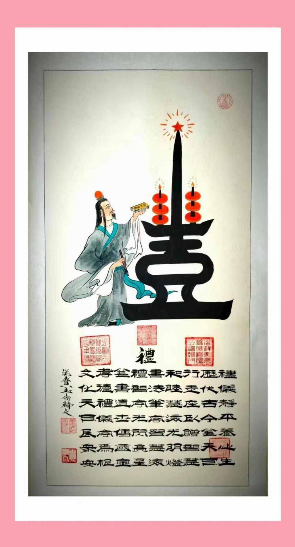 张宝玉的"国极历史文化字创解"是这一理论的集中体现。该系列作品将汉字的结构与意义通过绘画语言重新诠释,每个字都按其创字先祖的原始意义被绘制成画,并在下方附有详细的注解文章。例如,"孝"字可能被表现为一个孩子搀扶老人的画面,"爱"字则可能转化为相互扶持的人物形象。这种创作方式不仅具有艺术观赏价值,更蕴含深厚的文化教育意义。正如张宝玉所言,其主导思想是"教育和诱导下一代重视每一个字的重要性,好好学文化字",让当代人通过视觉艺术重新认识汉字的文化内涵。