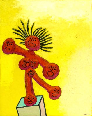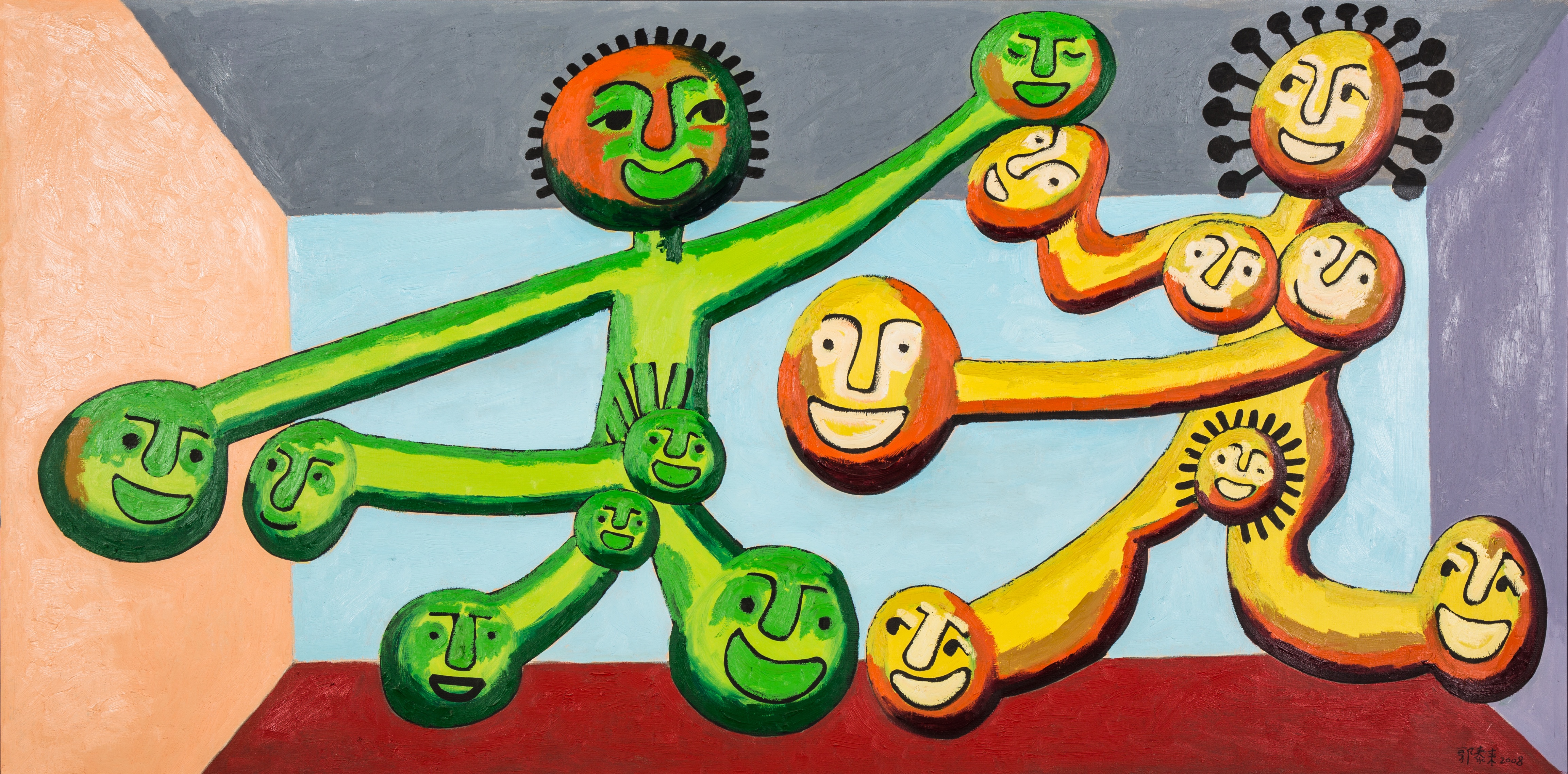 故事的开端,始于2008年。新世纪的晨光初露,现代艺术家郭泰来却沉浸于一种未来的焦虑与狂想之中。他不断追问:究竟什么能定义这个崭新的世纪?答案在脑海中激荡,最终凝聚为三个关键词:“头脑风暴”、“智能”与“机器人”。这并非具象的科技产品,而是一种弥漫的精神意象。他将这种澎湃的思绪倾泻于画布之上,于是便诞生了这组“永生主义”作品。画面中那些“多头”的形象,并非怪诞的堆砌,而是智慧爆炸的象征,是内在思维与外部智能的激烈对话,是他脑海中机械灵魂的具象化图腾。