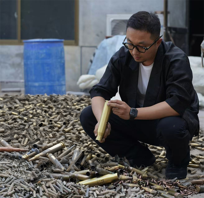 作品的创作初心,始于2022年俄乌冲突中刺痛人心的成堆弹壳。艺术家邱天仁耗时多年,收集了来自第一次世界大战、第二次世界大战、伊拉克战争、俄乌冲突等不同时期的战争遗留弹壳。这些冰冷的金属残片,曾是撕裂生命的凶器,如今被熔铸为雕塑的筋骨,成为铭刻伤痛记忆的载体。