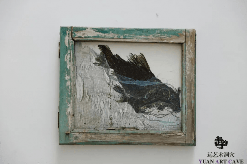 Zhao Mingyuan special relationship to animals began at an early age when he had a crab as a beloved pet, it was followed by a fish and a cat. He shows a keen interest to distinguish details, and depict small animals with a refined and vivid brushwork which for a young painter like himself is a most important point. Echoing the metaphoric articulation of Zhu Da (1626–1705 ) known as Bada Shanren who expressed his inner vision of the external world and of human affairs by painting landscapes, Zhao Mingyuan employs in a similar manner animals as metaphors. Merging a Chinese traditional perspective with a contemporary vocabulary, exmplified in his painting-assemblage, where a carp fish painted in ink on paper a classical style is inserted into a used and broken wooden window frame featuring a real plastic net. With the representation of the fish caught in all its symbolism of prosperity, abundance, luck, and happiness. Zhao Mingyuan employs in general the traditional Chinese concept of the unity of nature and man, in which details are metaphors for larger issues, merging a classic Chinese form with a contemporary vocabulary, while using a universal symbolism with a shifting micro and macro perspective.
