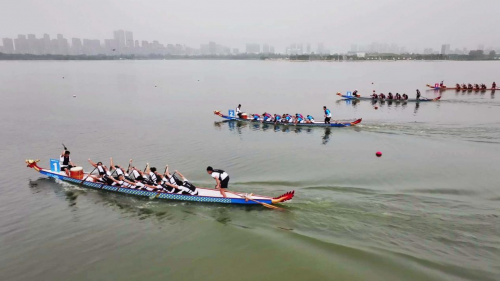 本次赛事以“禹会诸侯地”为文化锚点,巧妙融合竞技体育的现代规则与国际赛事标准,设置10人桨直道竞速项目,通过500米劈波斩浪的激烈角逐,既展现“力与美”的体育精神,更彰显蚌埠作为“淮畔明珠”的开放胸怀。赛事特邀国内外9支高水平队伍,与本土3支劲旅同台竞技,在传承中创新,在交流中升级,让传统民俗焕发时代光彩。